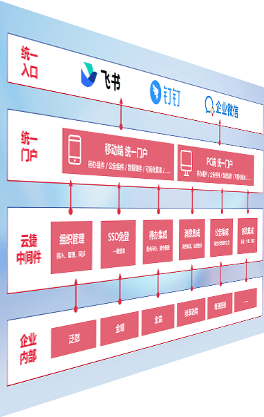 对协作平台提供支持服务,,支持企业应用与协作平台对接,,,,包含组织同步、、、消息集成、、待办集成等。。。。支持目前主流的协作平台:钉钉、、、、企微和飞书。。